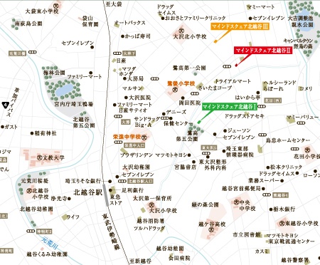 北越谷周辺には、緑の多い公園やお買い得なスーパーなどが多数あり、 暮らしやすく便利な環境です。