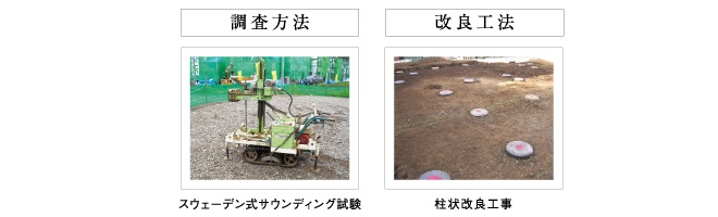 精密な地盤調査を行った結果、軟弱性などの課題が認められた地盤に対して、 ポラスではソイルセメントコラム工法(柱状改良)などを実施し 堅牢な地盤を実現しています。