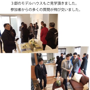 その後モデルハウス3邸(46号棟・58号棟・75号棟)、施工現場、街並みを3チームに分かれ見学して頂きました。