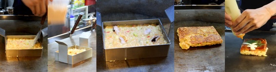 ここは鉄板の前のカウンターで。