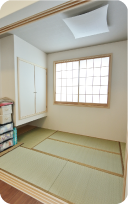 あと、和室の開放感がいいです。とても明るいですし、コタツとかも置けます。モデルルームのときもちょっとお洒落な家具が置いてあって、いいなと思いました。畳の香りがするところもいいですね。