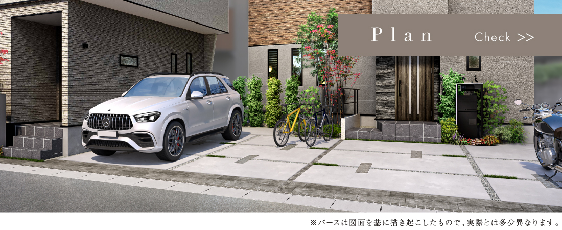 ■敷地面積121㎡超×カースペース並列2台対応・サイクルスペース有