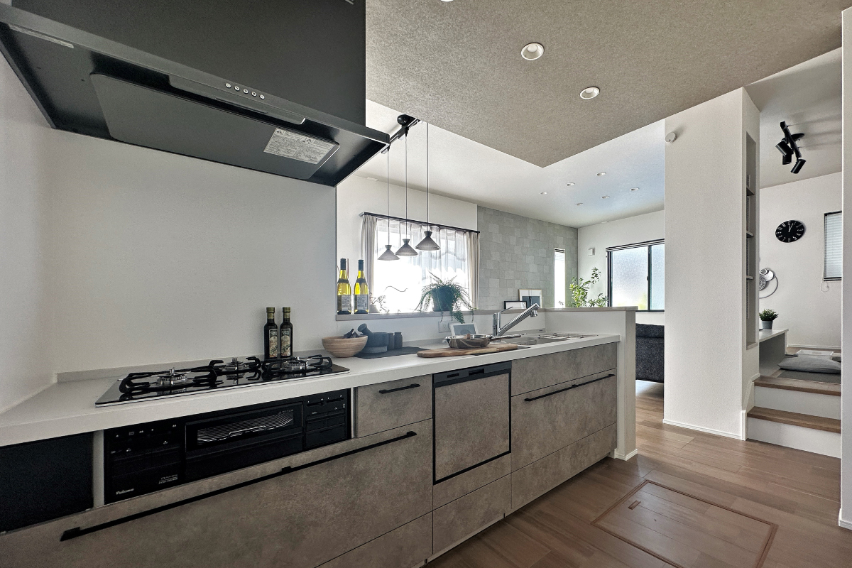 • 視界に広がりを生むオープンなキッチンを採用しました。キッチンにいながらリビング・ダイニングにいる家族とコミュニケーションをとることができます。