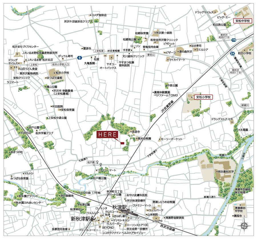 カーナビをご利用の際は「埼玉県所沢市下安松468(付近)」とご入力下さい。