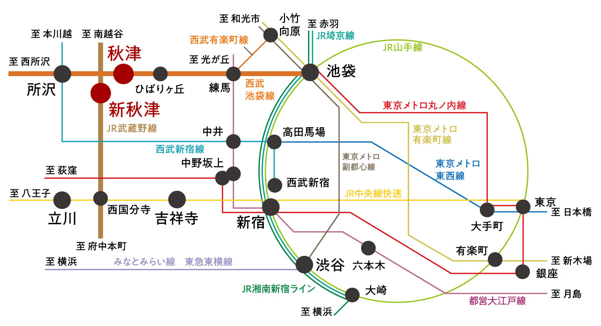 「西国分寺」駅で中央線快速(東京行)に乗換