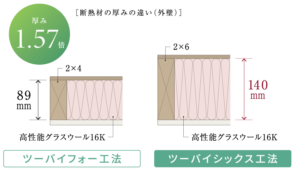 「ツーバイシックス工法」による高い断熱性