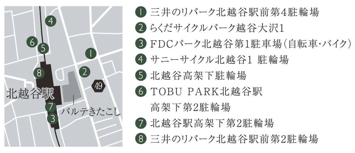 東武スカイツリーライン「北越谷」駅へ自駅転車10分・ 東武スカイツリーライン「越谷」駅へ自駅転車15分でアクセス可能。