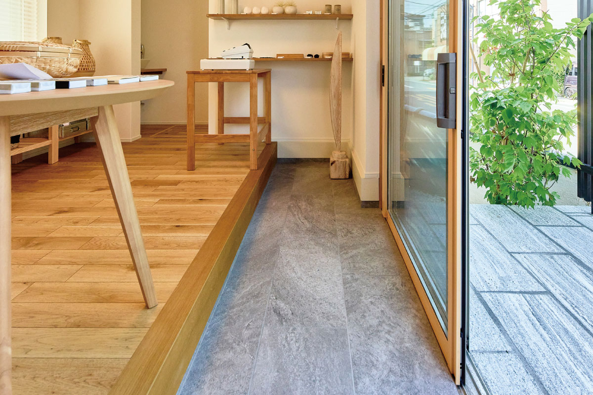 印象的な場所を演出する土間空間。