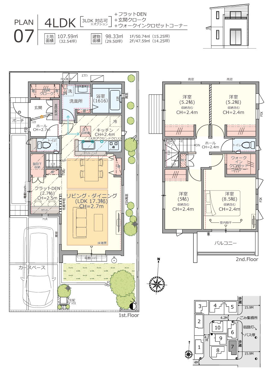 切妻屋根の安定感と、片流れ屋根のシャープさが織りなす10邸の街並みは、住まうほどに深く馴染む、洗練された造形美を湛えています。