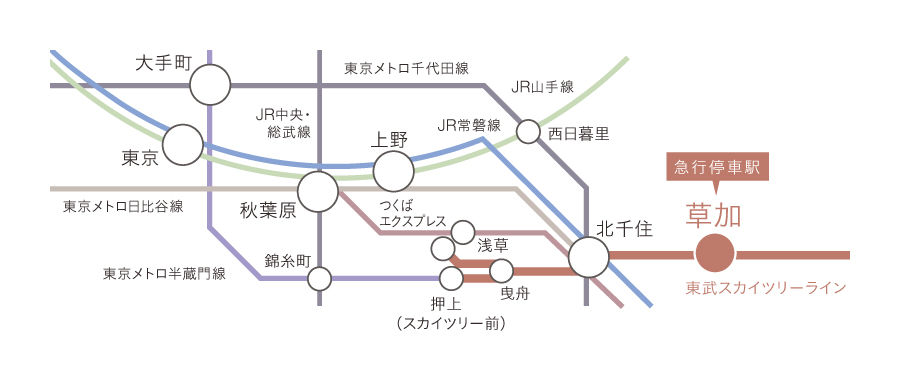 「北千住」駅でつくばエクスプレスに乗換